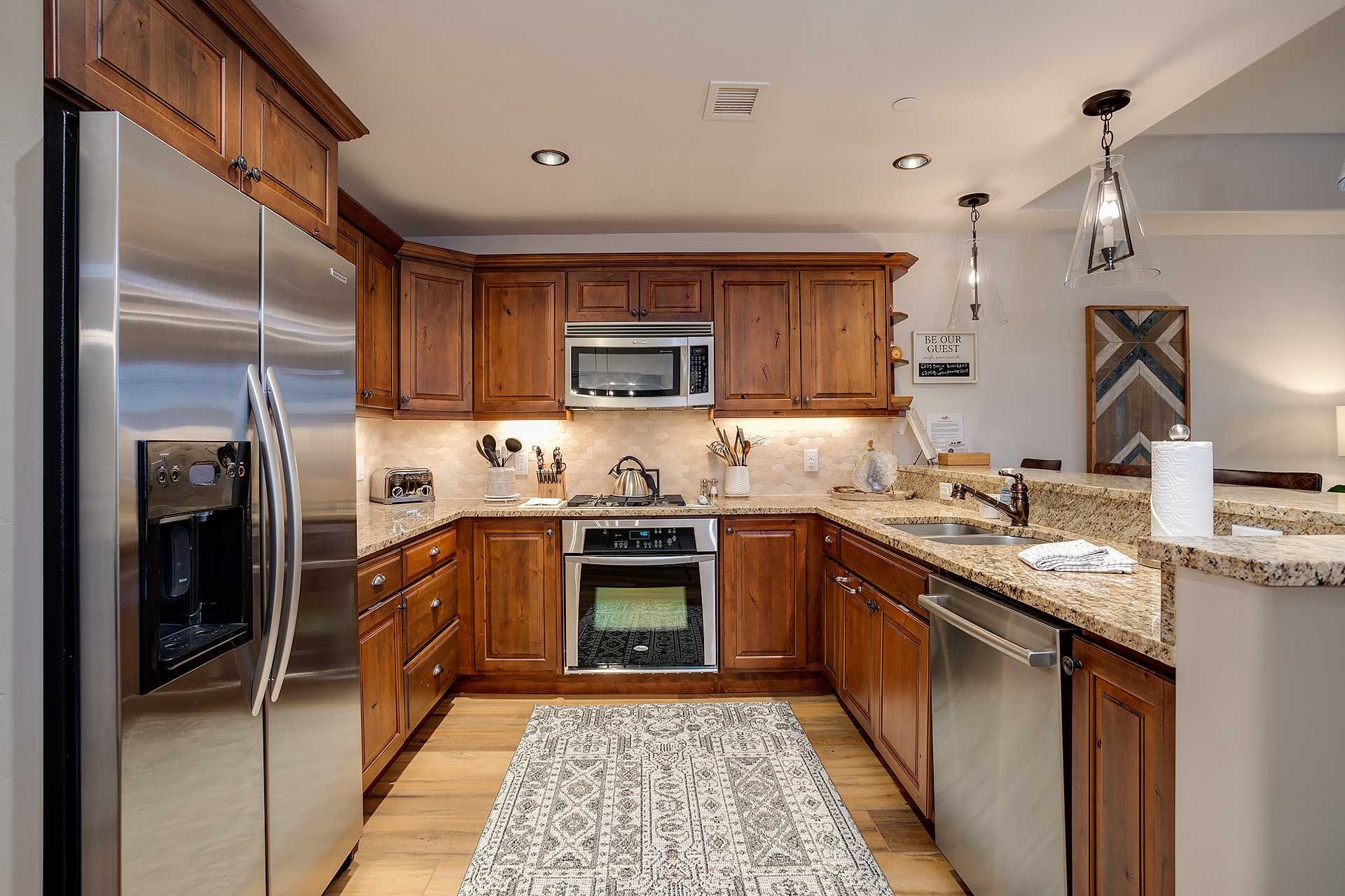 This unit is outstanding! Best stocked kitchen with high end appliances we've ever rented for all your cooking and grilling needs. The open concept dining and living area with a fireplace and comfy furniture is the perfect gathering space. Bedrooms had blush beds, nice bathrooms and TV's. Afternoon sun and happy hour on the deck was a great way to end the ski day. Shuttles to and from the ski area were easy and convenient. We will be back!