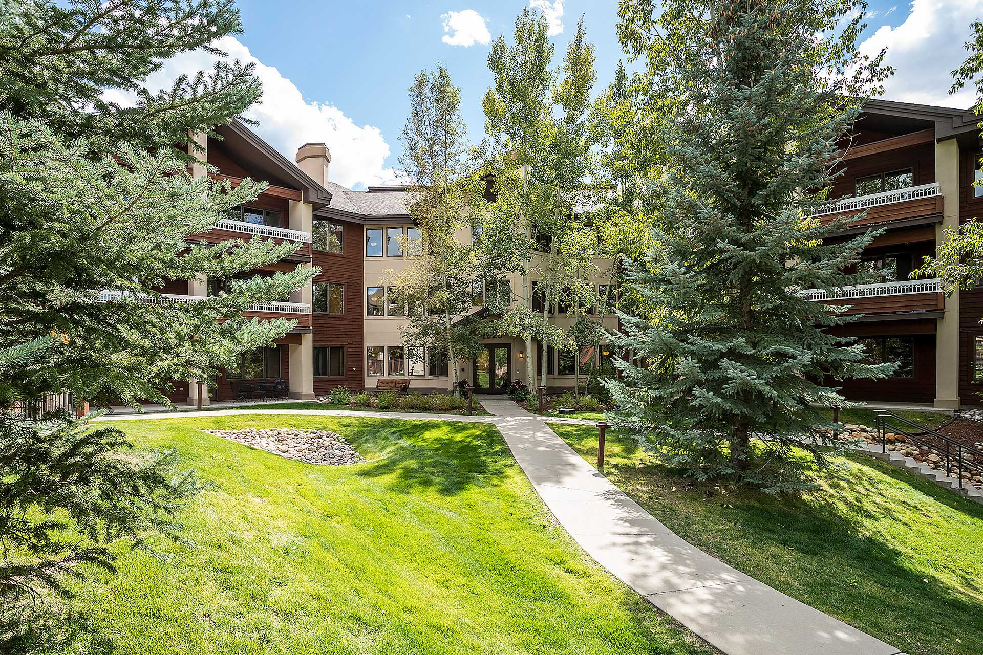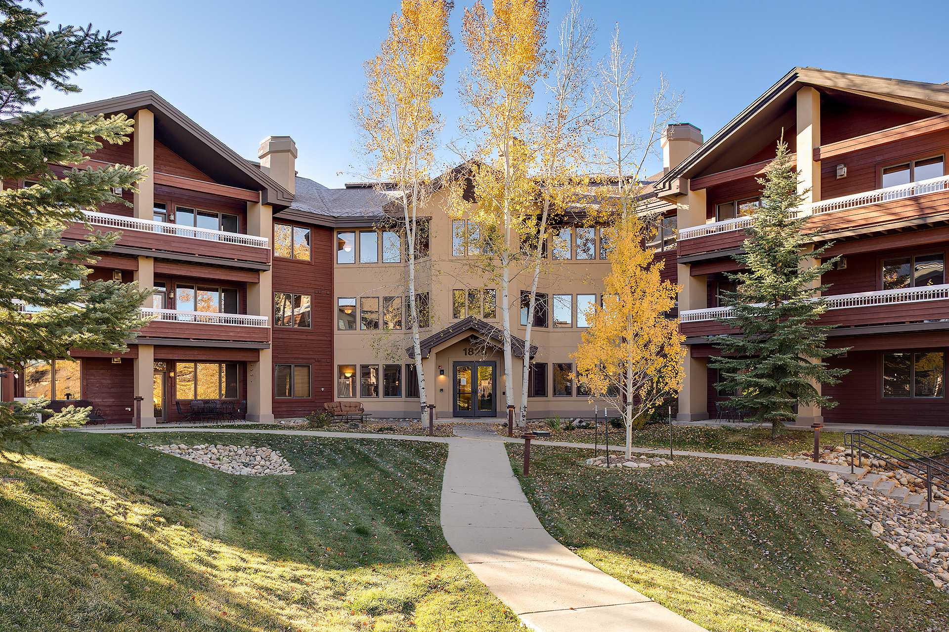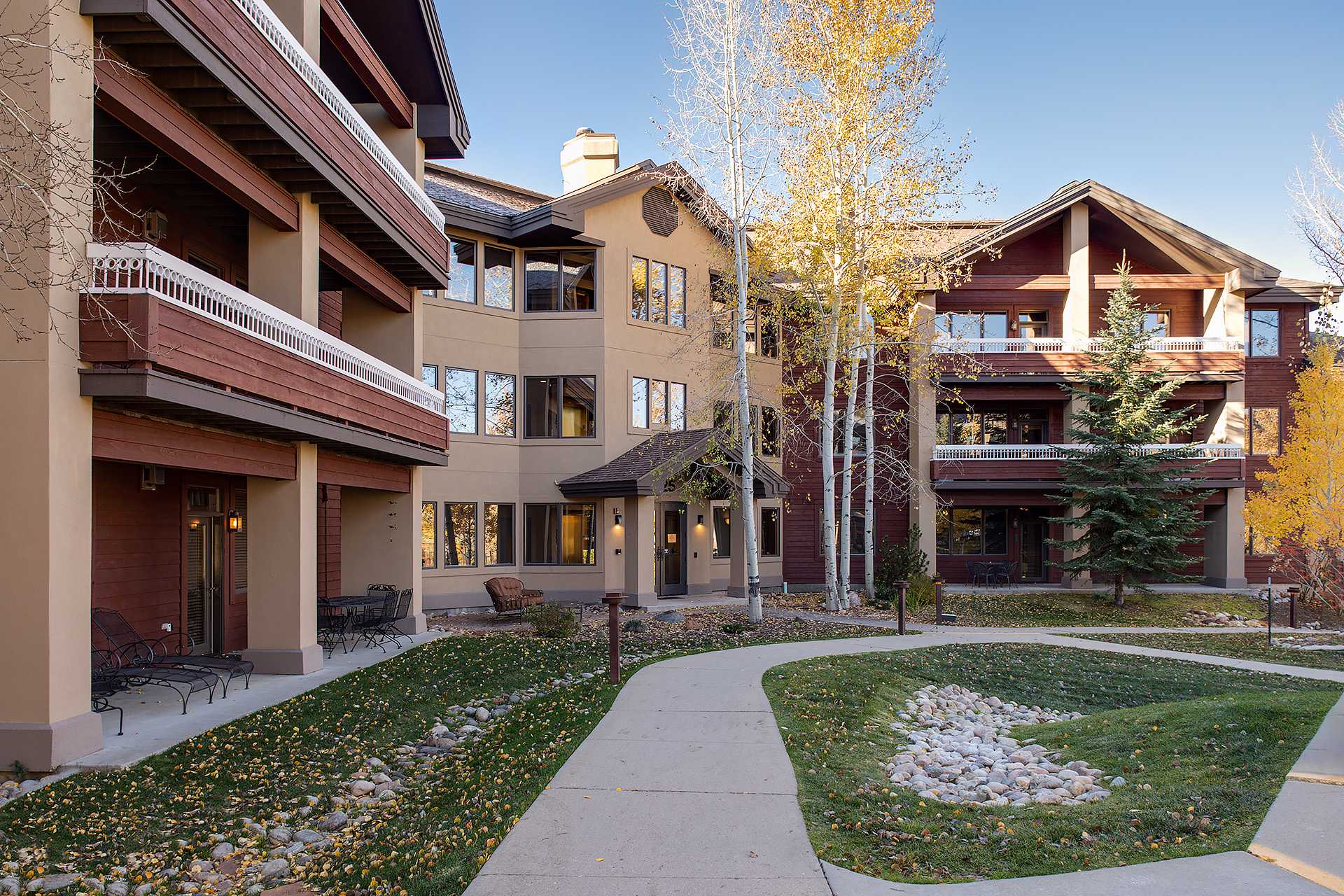 Treat yourself to a multitude of options at Champagne Lodge nestled in the Aspen trees of the Rocky Mountains. Champagne Lodge offers two bedroom, two bedroom plus den, three bedroom and four bedroom residences. Every condominium is equipped with a fireplace, Wi-Fi, living area and a patio or deck. The building has limited indoor heated parking.